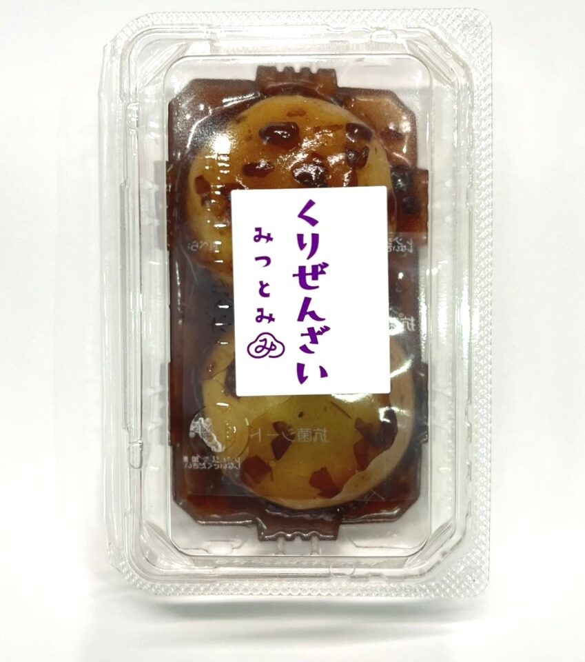 くり風味のもちもちおもちにぜんざいをたっぷりかけました。